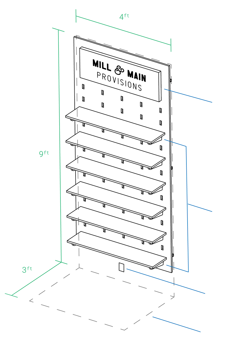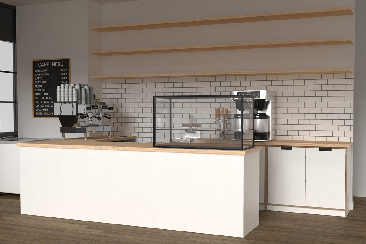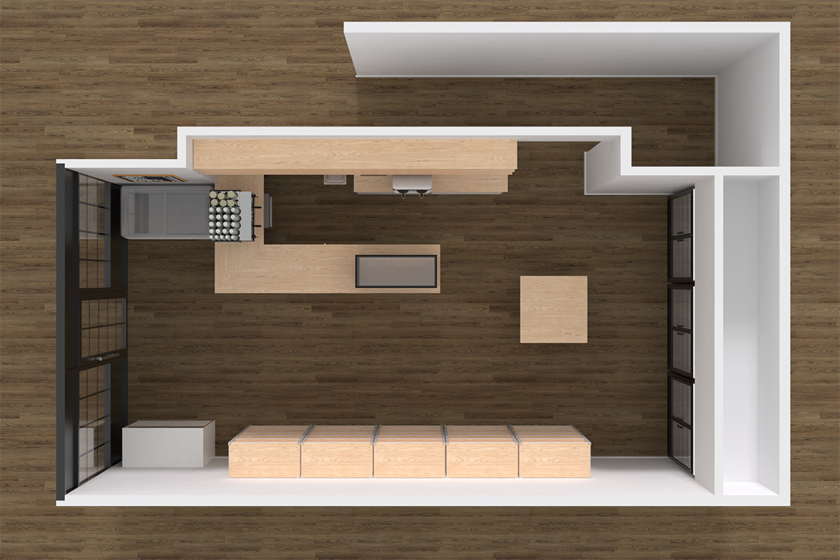 The final layout focused on fitting as much retail space as possible into the store as well as an optimized space for preparing drinks & limited to-go menu items.