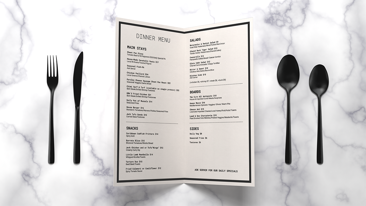 A restaurant, bar & retail design project. My responsibilities included planning, project management, sourcing, design services & branding.