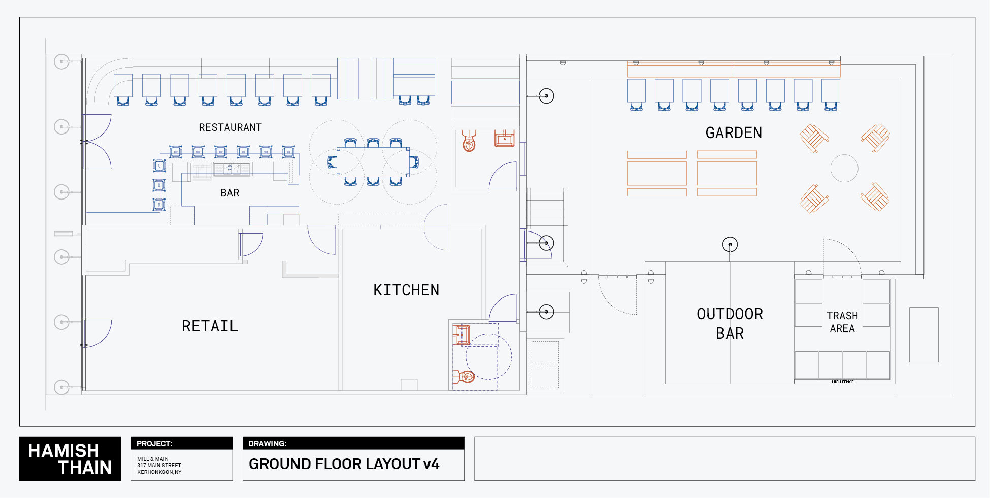 Taking input from my clients, planning board, health dept, & liquor auth. I was able to settle on a final layout that satisfied all their requirements.